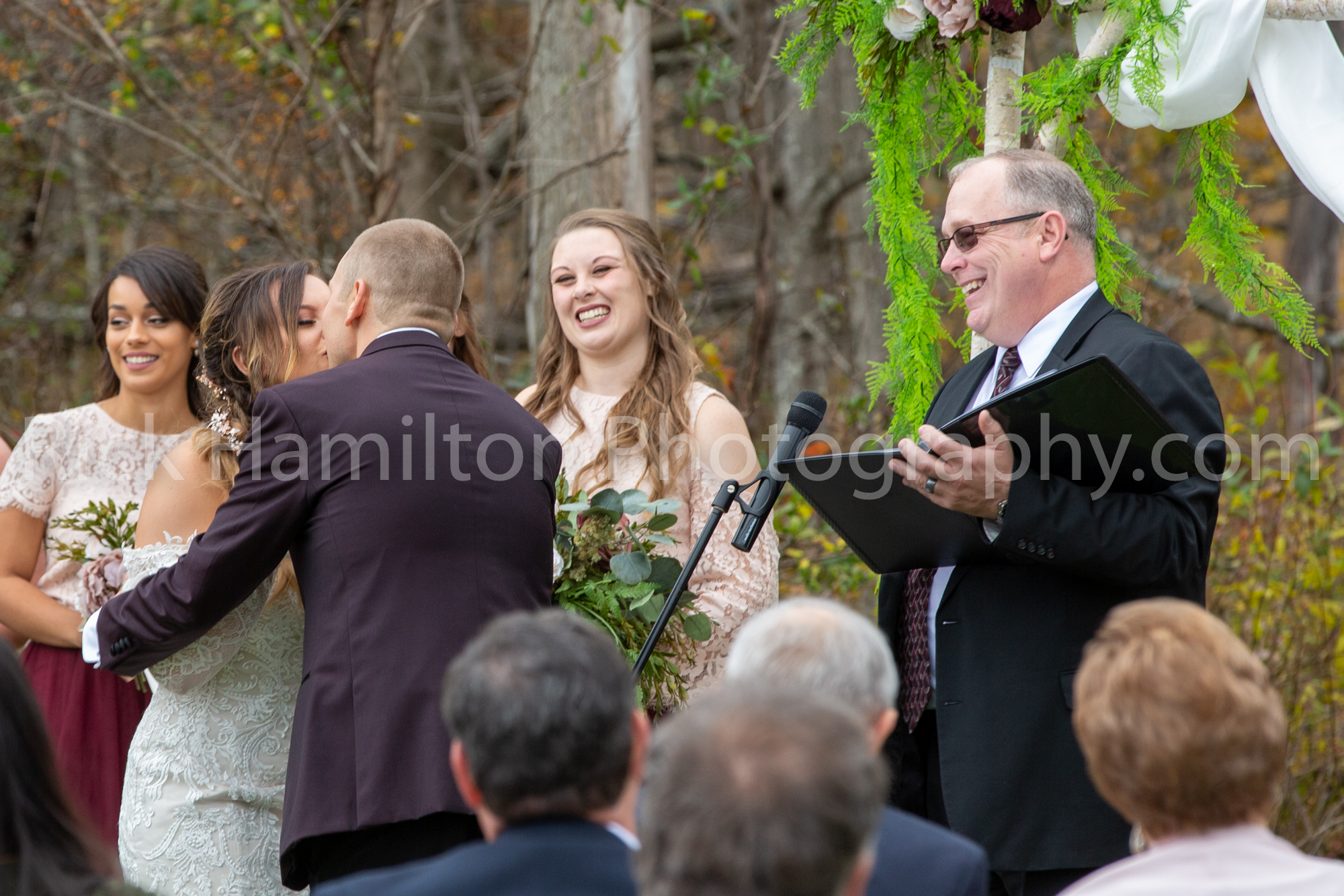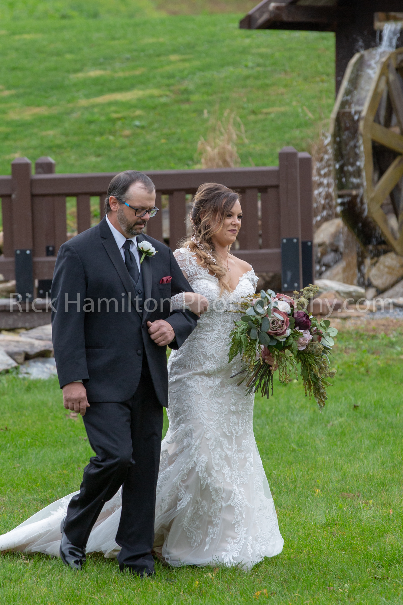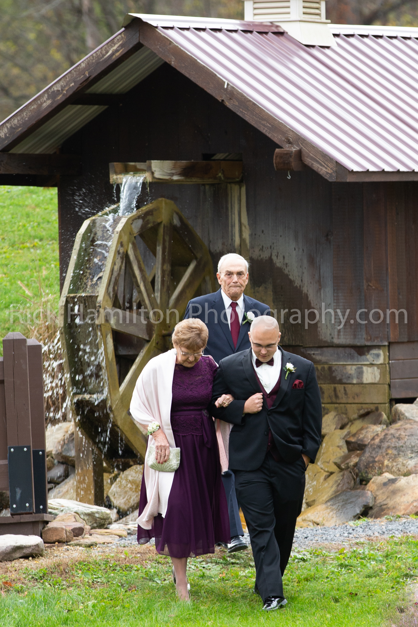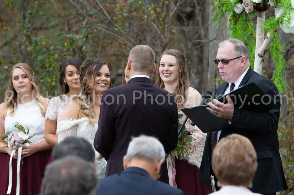 For the first time the wedding was not held near the old stone house at Belle Mountain. It was held behind the pavilion where there is a stream. It made for a nice background as the bride walked from the pavilion past the water wheel. It’s a beautiful place.