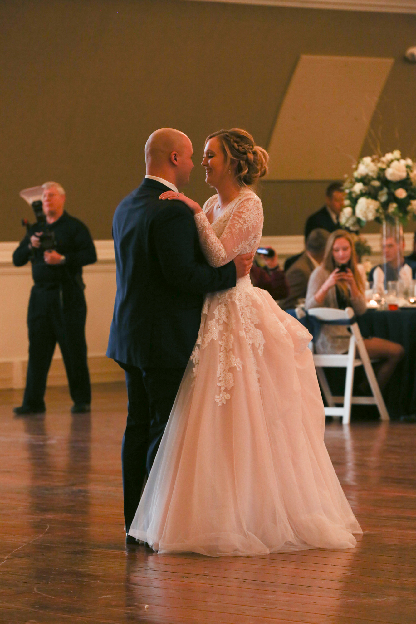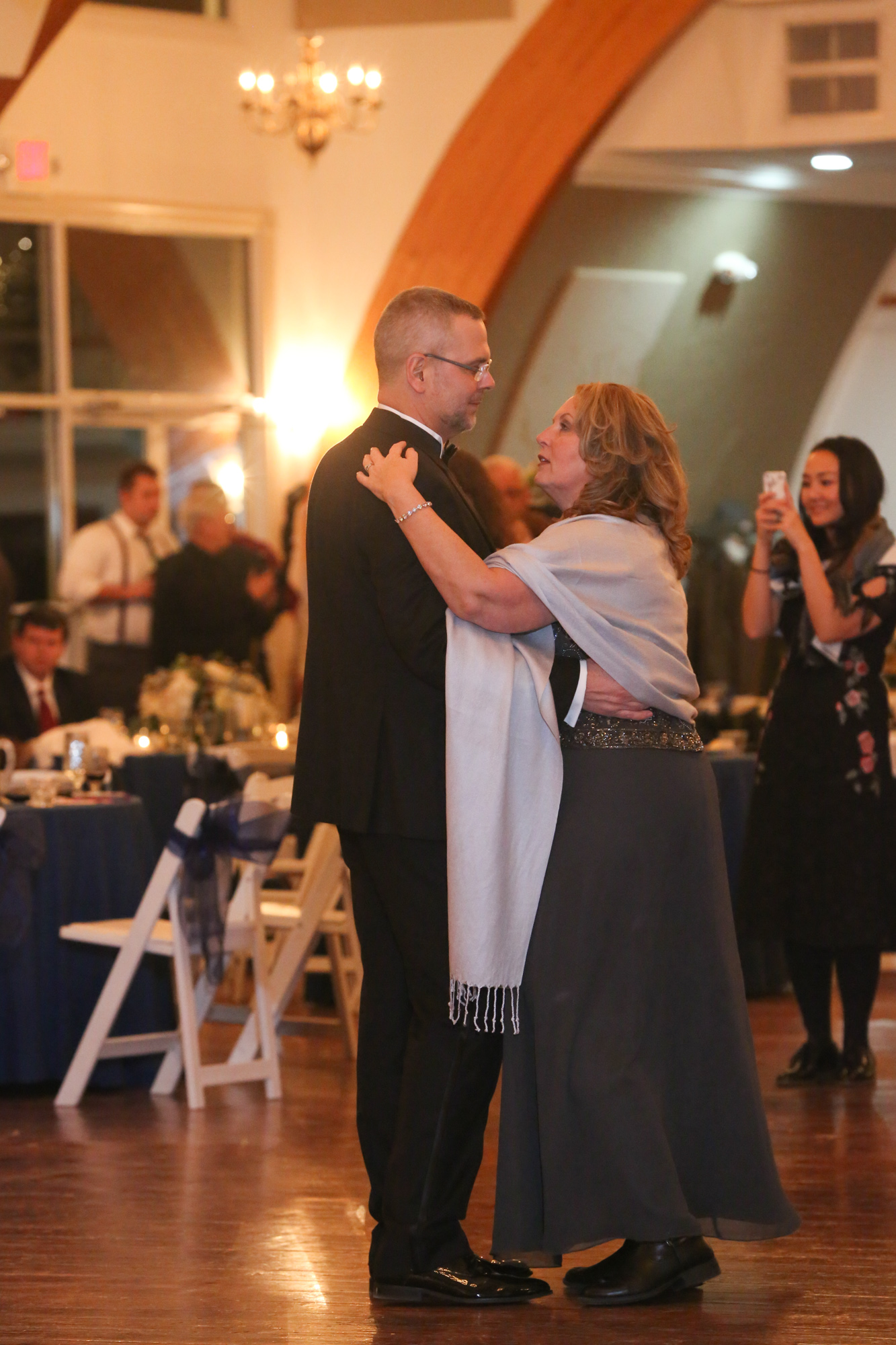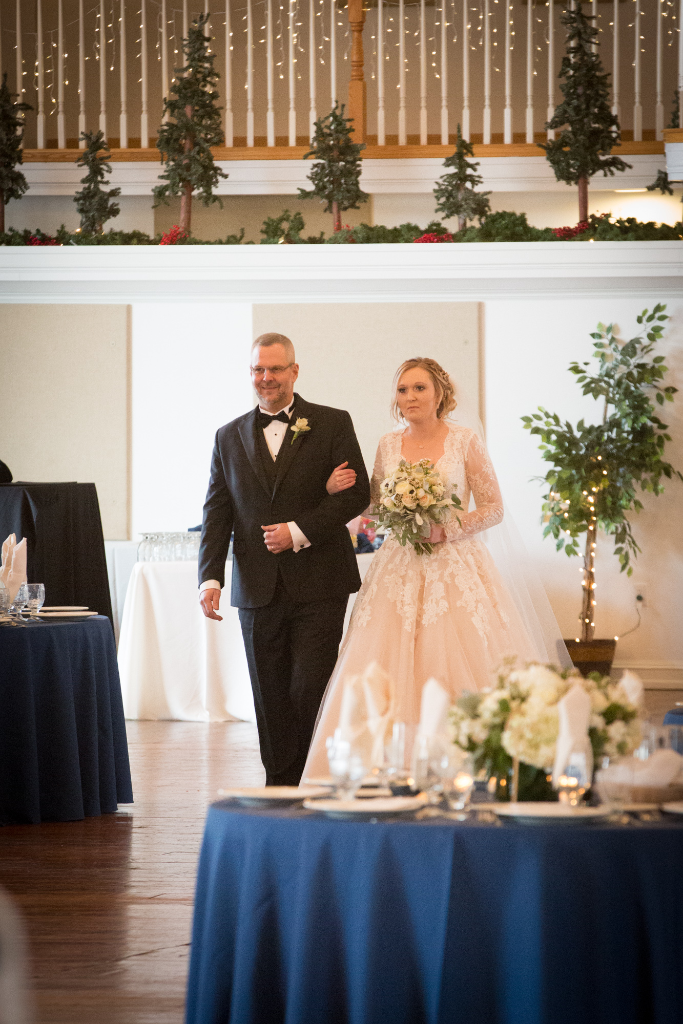 I was the DJ for this event but pleased that the bride let me take some photos. I should mention that I was on the mend from a hospital visit only three days earlier. Knowing that please know that every photo I am showing here was taken from the exact same spot. The Dj table where I was sitting. Also a shout out to the groom and groomsmen for helping me get things set up for the reception. The last time we were at this venue we didn’t have to worry anything but the heat. This being a January wedding we were concerned about snow, ice and freezing rain. Fortunately it was just cold and we were inside.