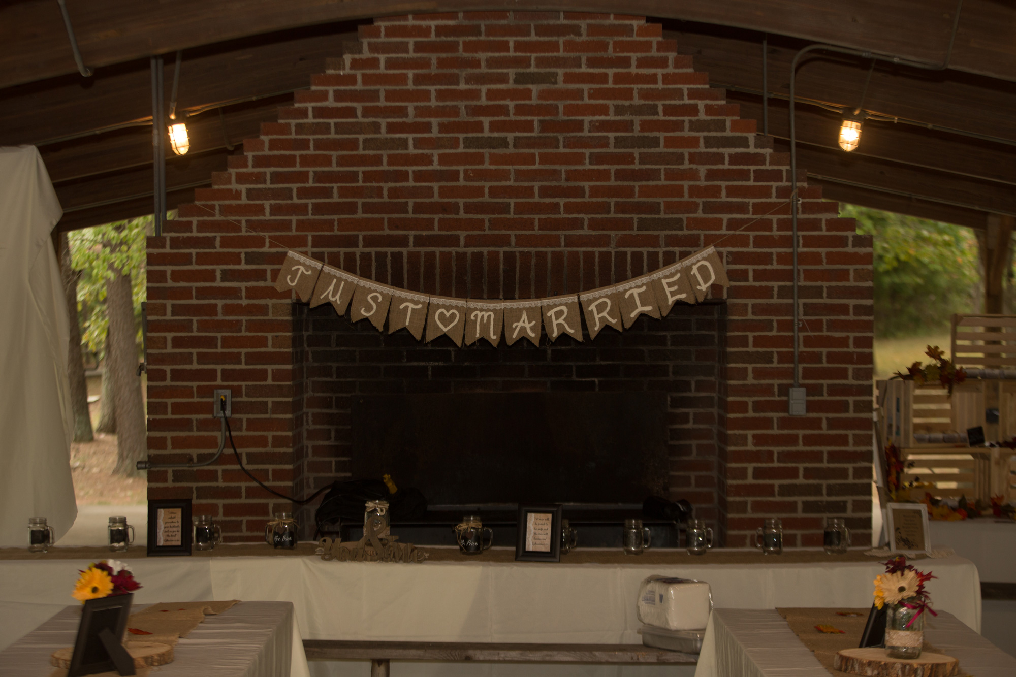 This was not a new place for me to DJ. I have done many a job at Raystown Resort. The part that was new was this pavilion site. A nice site located not too far from the waterslides. Fortunately for the wedding couple the slides were closed and there was no noise coming from them. Also, something I didn’t know about with this particular spot was the small field off to the side. It made a perfect spot for a wedding. The couple had bales of hay lined up for seating. They had a nice spot decorated for the ceremony.