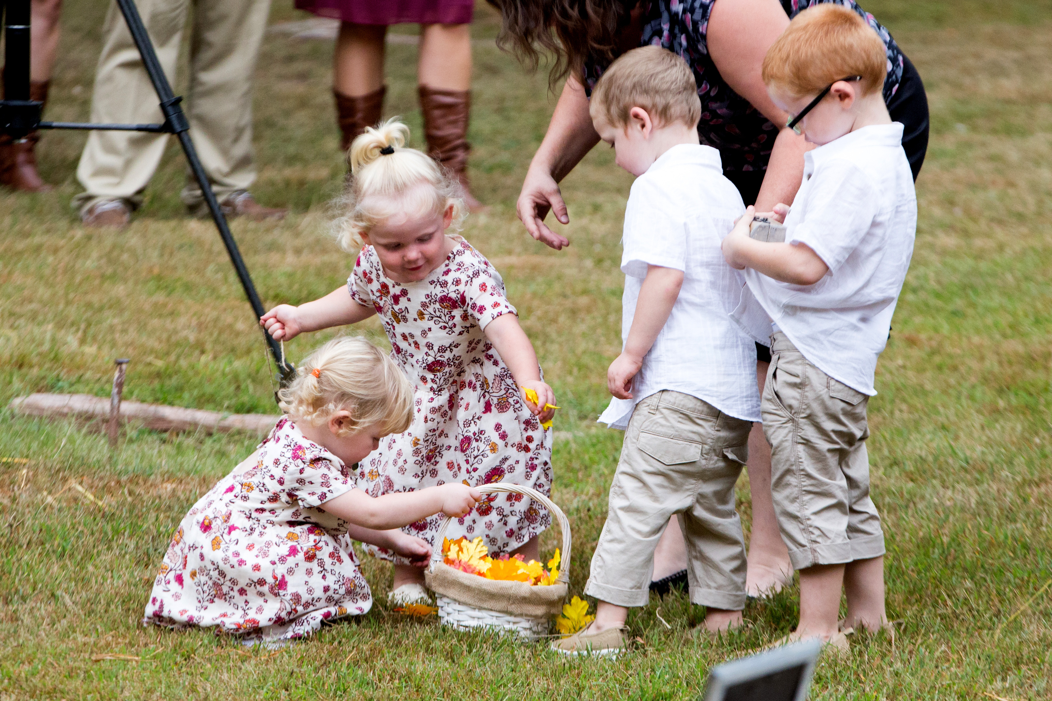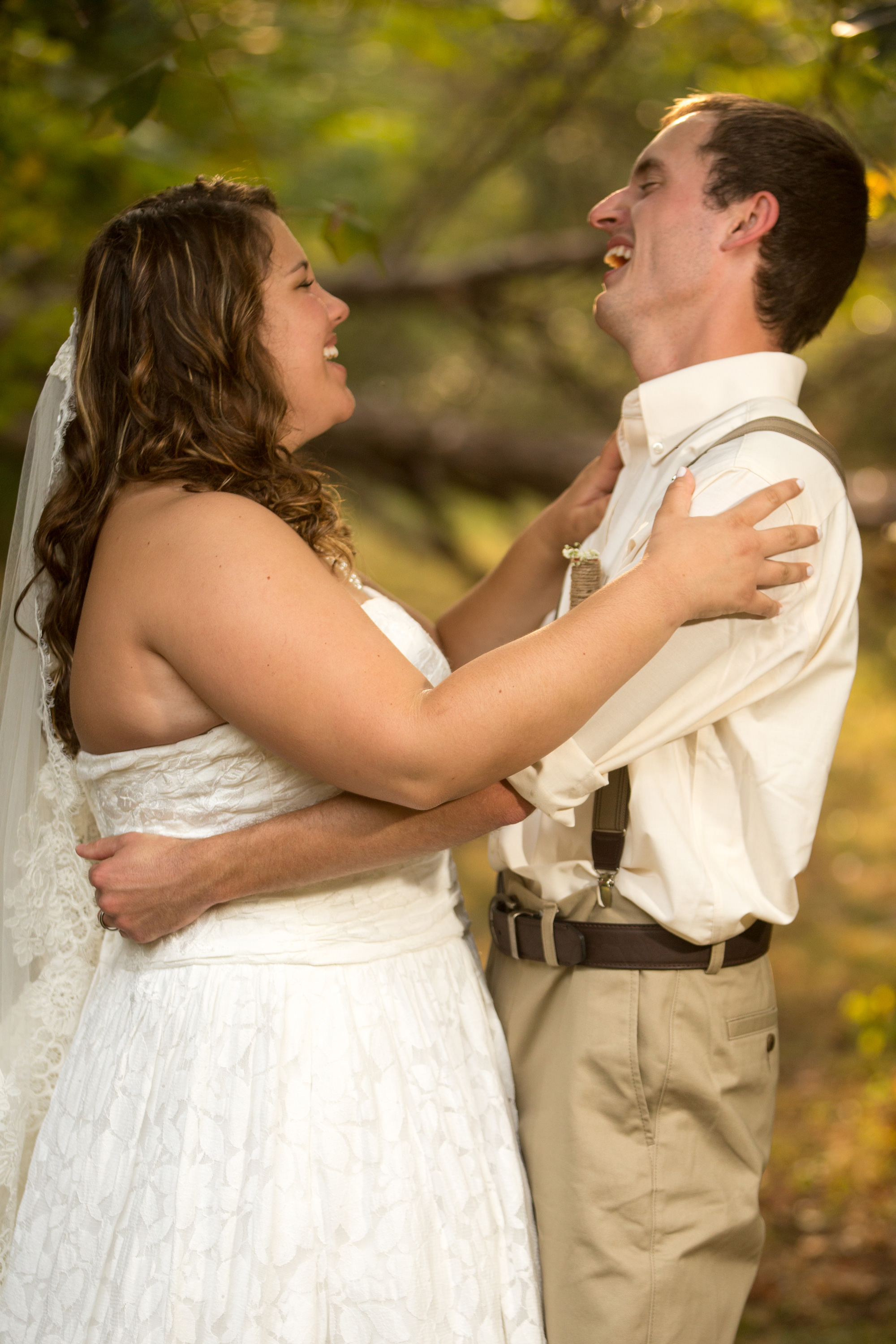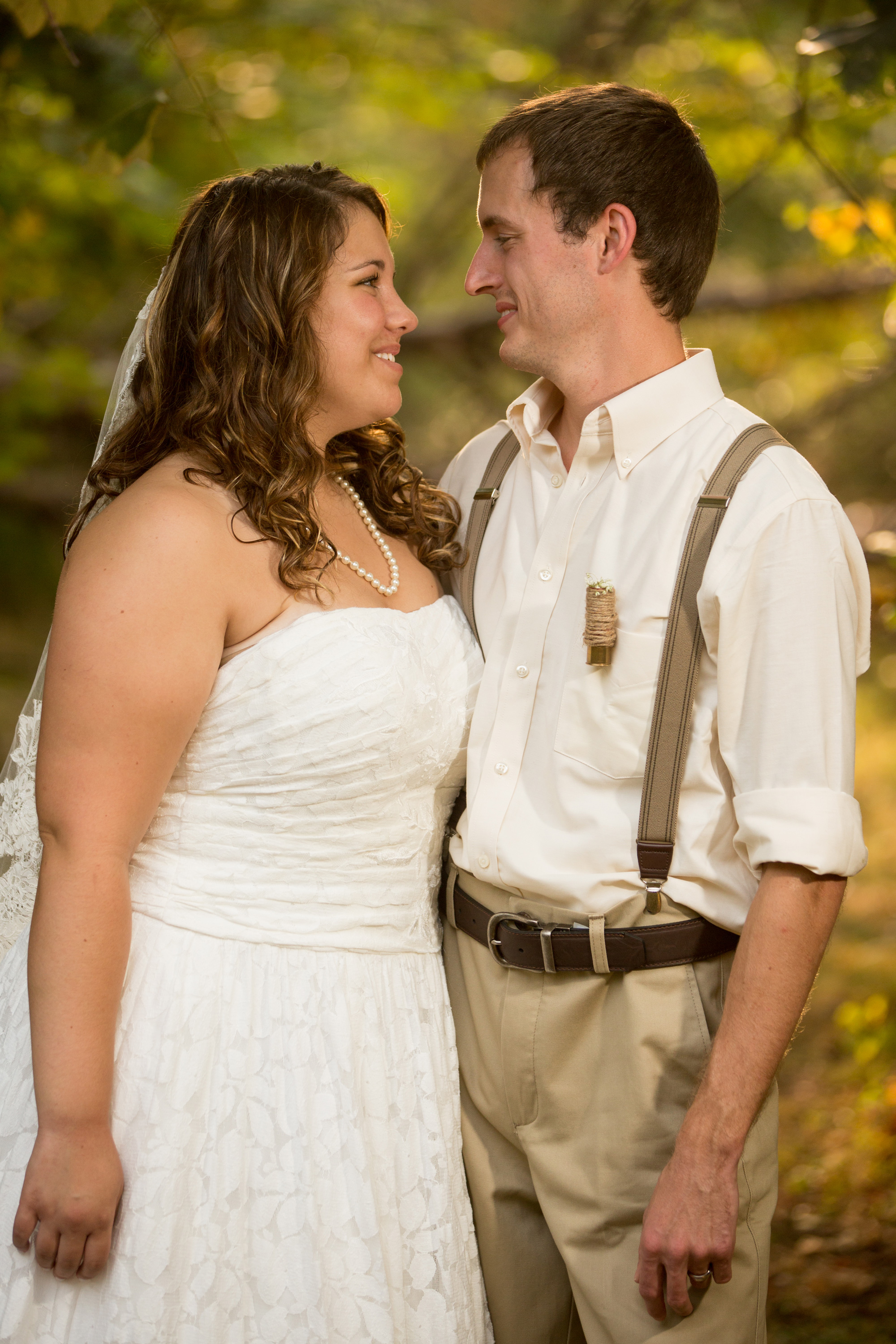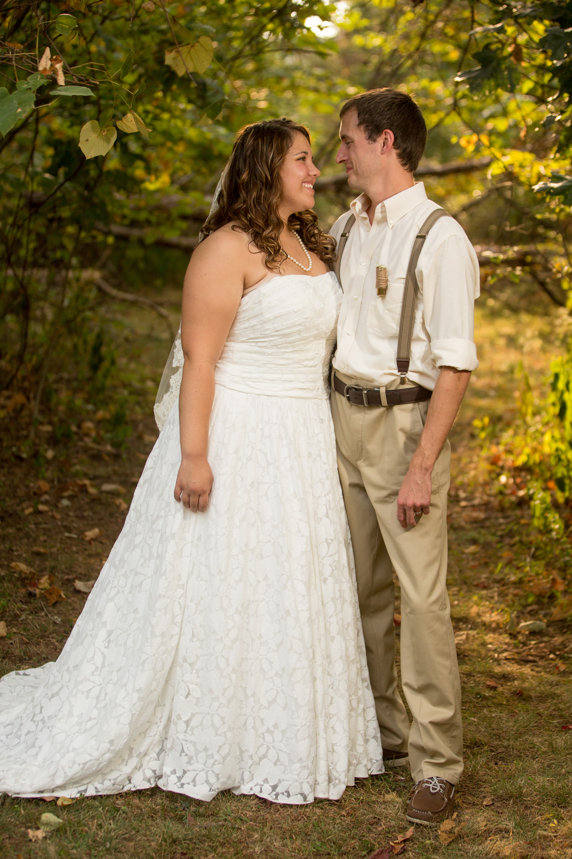 When the wedding started the groomsmen walked with the pastor down through the wooded area and met in front. Then came the flower girls and ring bearers.They had a little trouble, but for most weddings this is nothing more than one of the great memories. The bride was escorted to the front and the ceremony began. She looked beautiful and all went well during this wedding ceremony. The bride was emotional in a good way and as you will see in one of the photos, the groom even had to wipe away a tear.