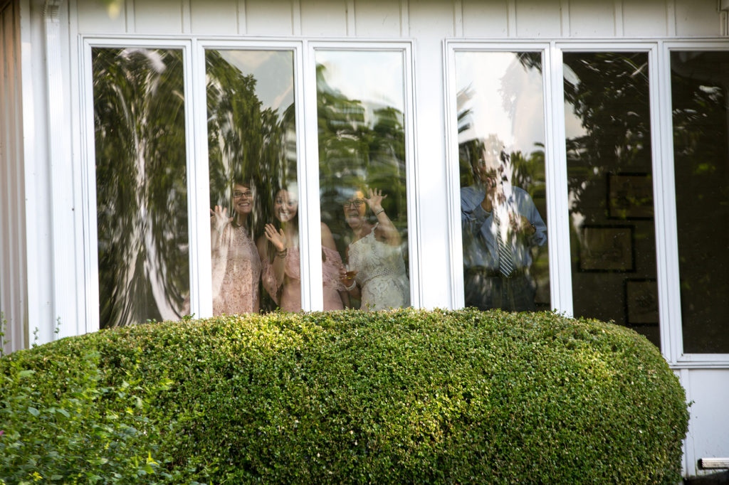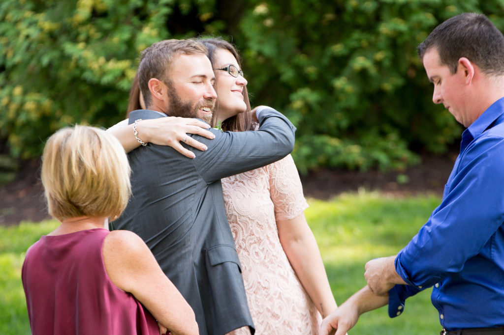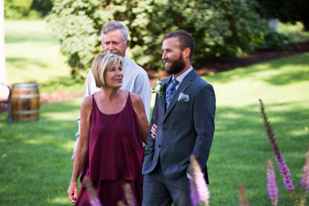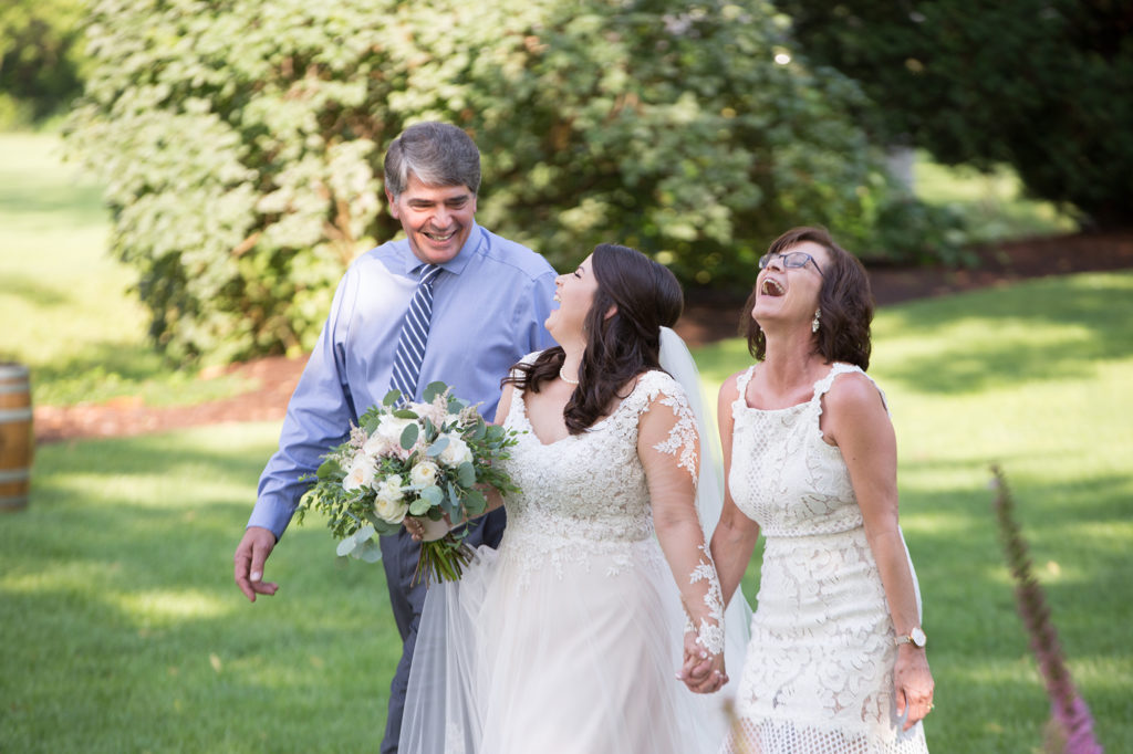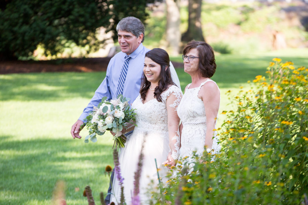 It was a really hot and humid day. In fact, as wedding time rolled around in rolled a thunderstorm. The wedding was set to start at 5:30 and the storm hit about 5:15. As soon as it ended the the skies turned blue a rainbow appeared and we knew it was time to go.