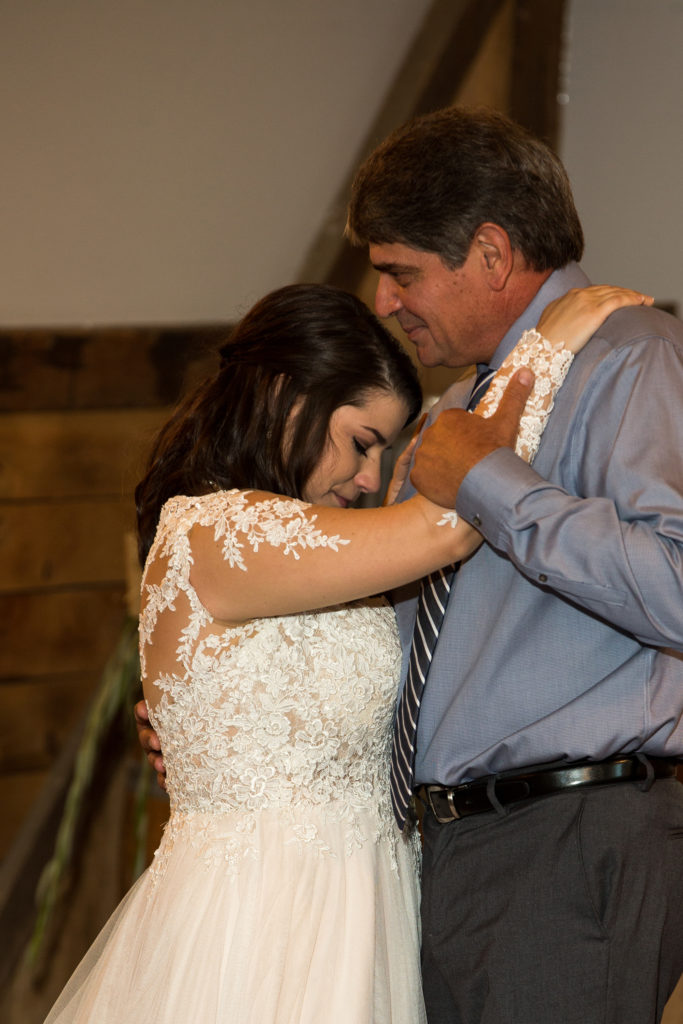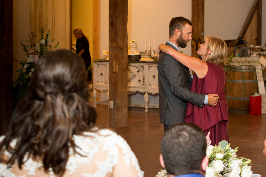 The couple came in and was introduced. The bride and groom went straight to the dance floor for their first dance. Bride and her dad were next followed by the groom and his mom. Before the reception the groom mentioned to me he was more afraid of the dances than the wedding. He did a great job in both.