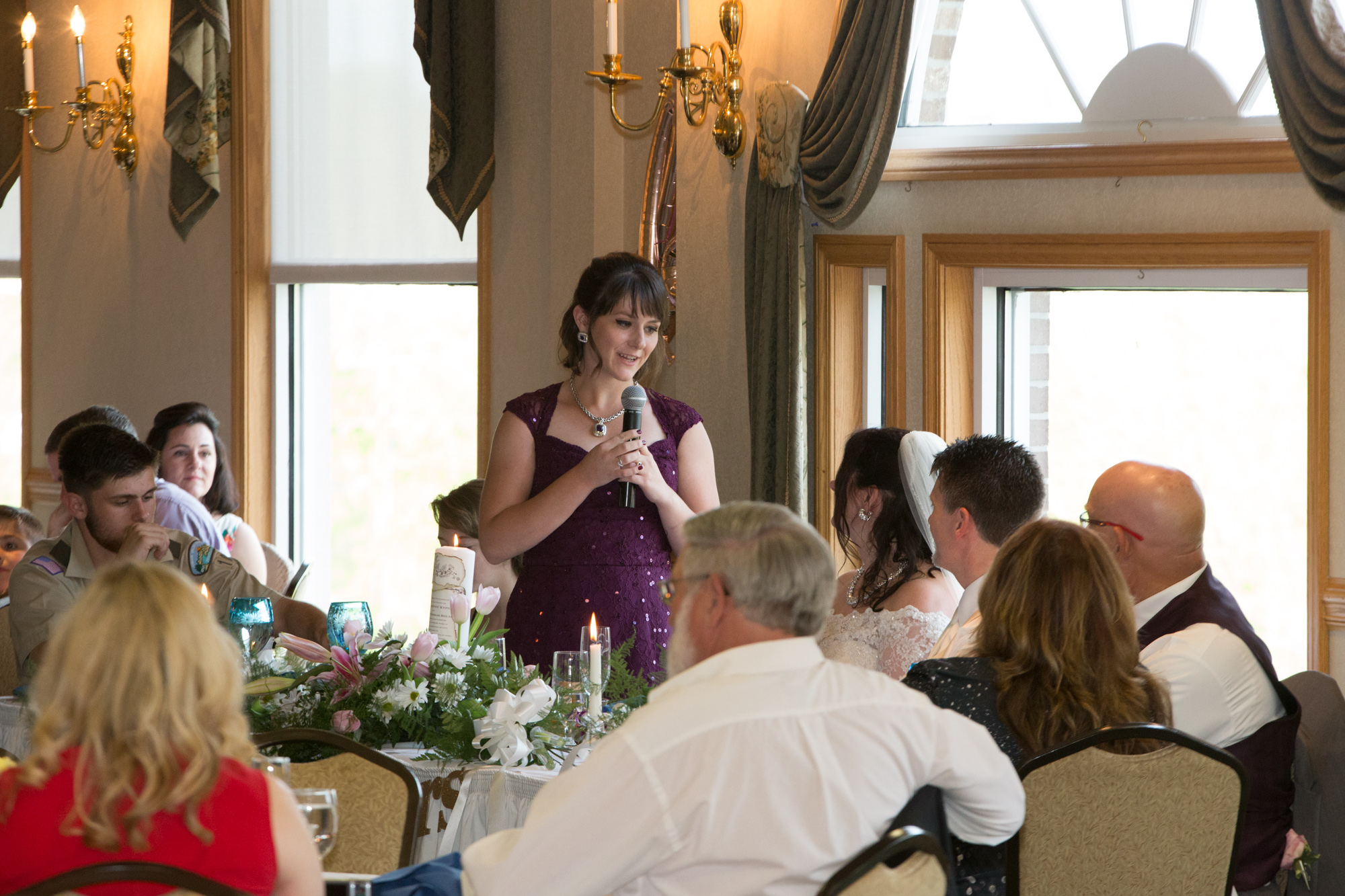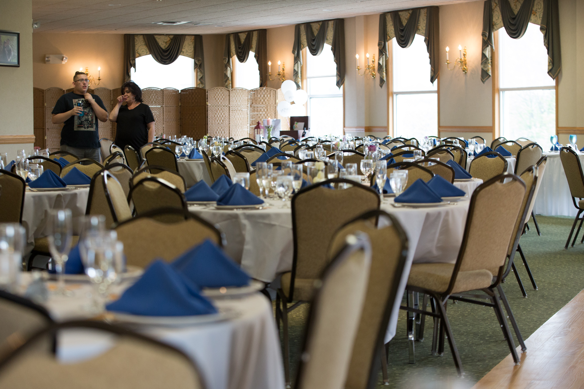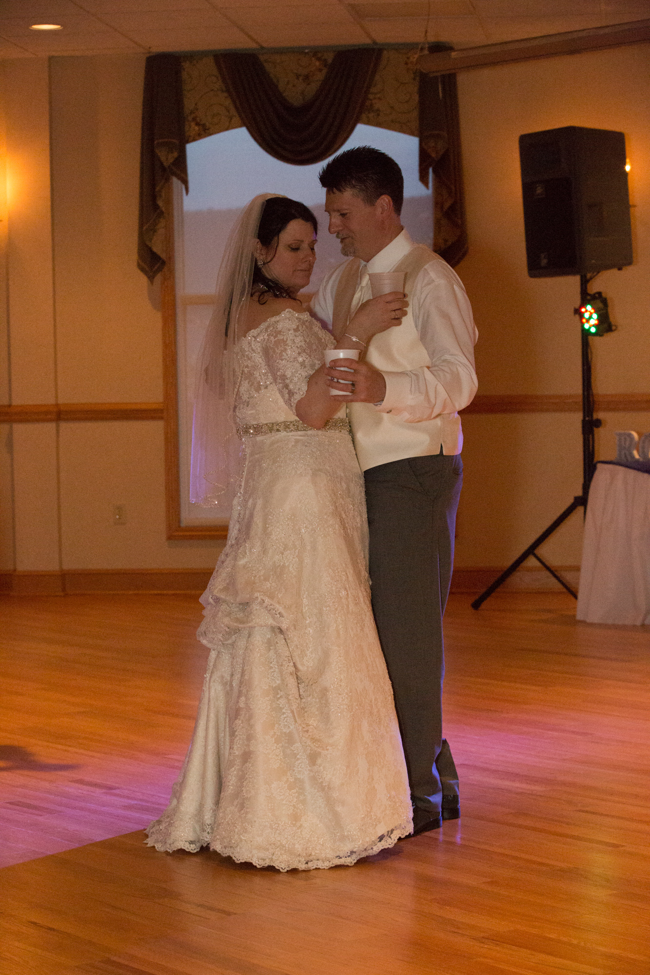 This reception was held at the Lewistown Country Club. I’t a really nice place. I would say it would seat a couple hundred pretty comfortably. The banquet room is on the second floor, but no worry about steps since there is an elevator. It has saved me a few times from when I have don DJ work here. I know it is also a nice feature for folks who have trouble with steps. The room was a nice temperature, the staff was great and the food was really, really good. They had wifi, which is pretty important it you want to keep young guests content.